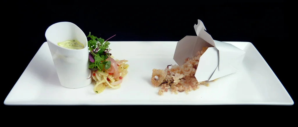 CALAMARI POPCORNlemon herb aioli - pickled hearts of palm salad