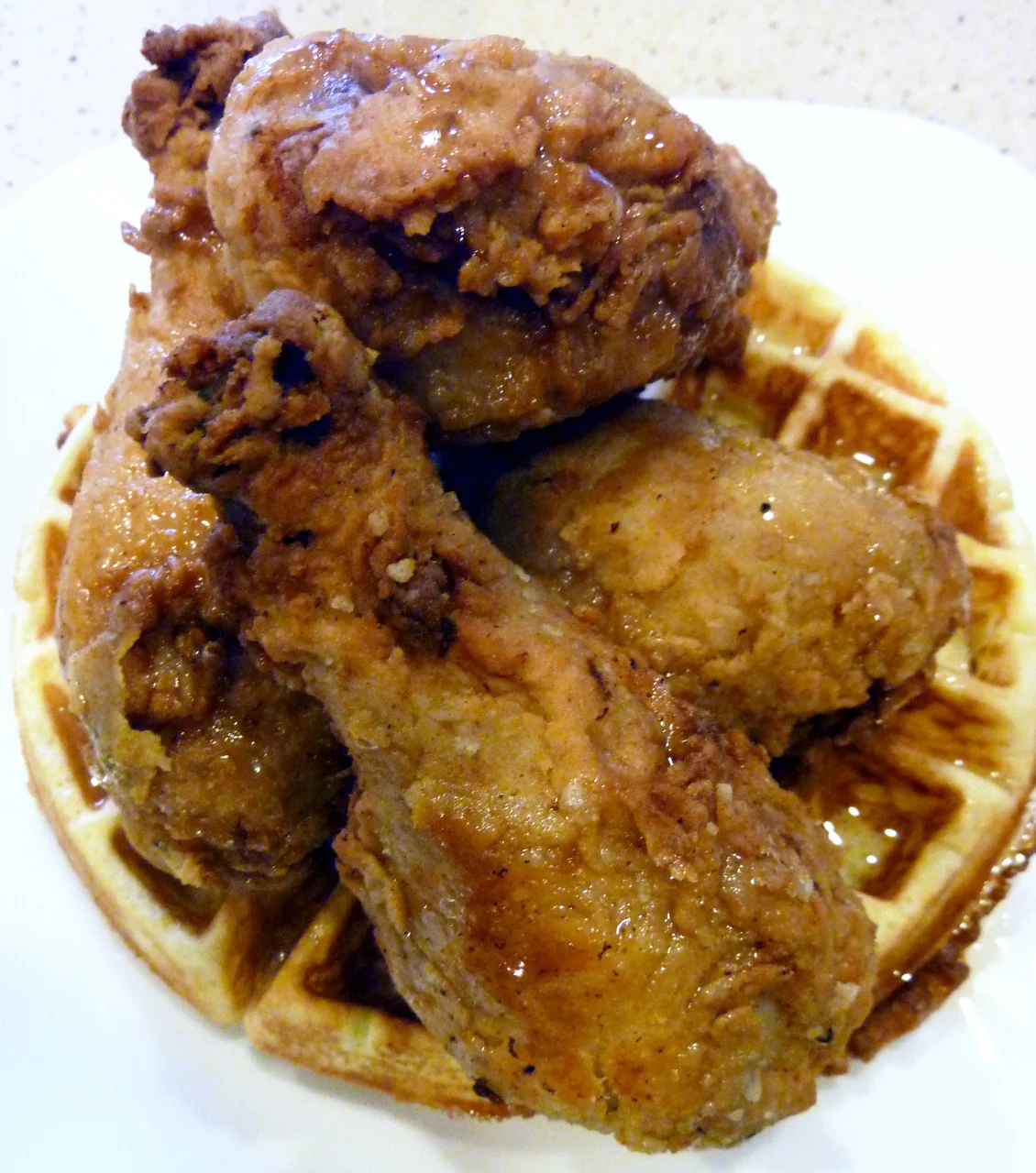 Serve chicken & waffles with pure maple syrup or even some honey (I prefer orange blossom for this one). Pop open a forty and some orange juice and enjoy.