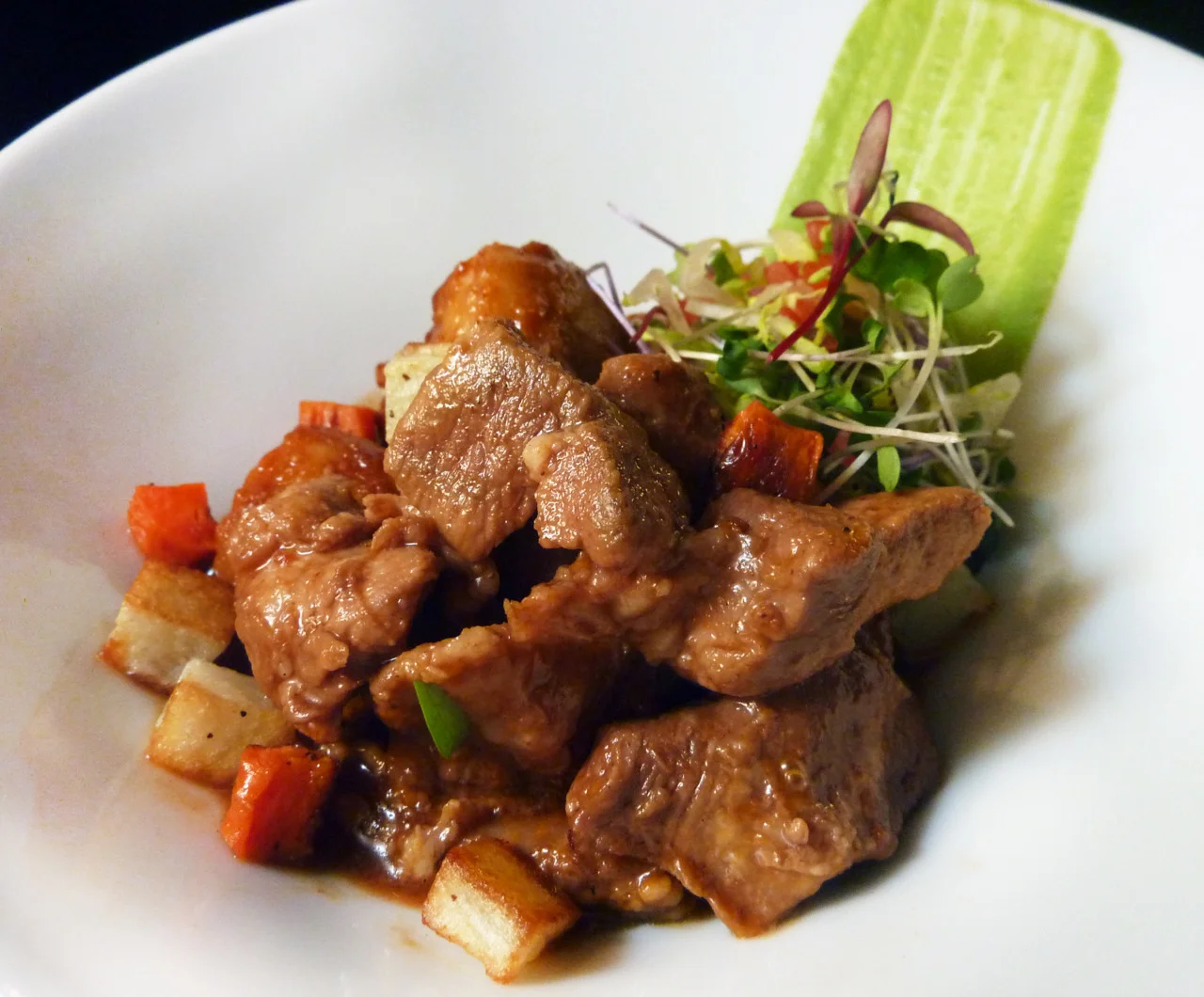 Tyler, one of our cooks, conceived and executed this dish. He braised some masa balls with the jus of the chile colorado and served it with some lettuce and tomatoes a la taco bell. I was really against the salad cause I thought it would look ridiculous, but obviously, he made it work, and well.