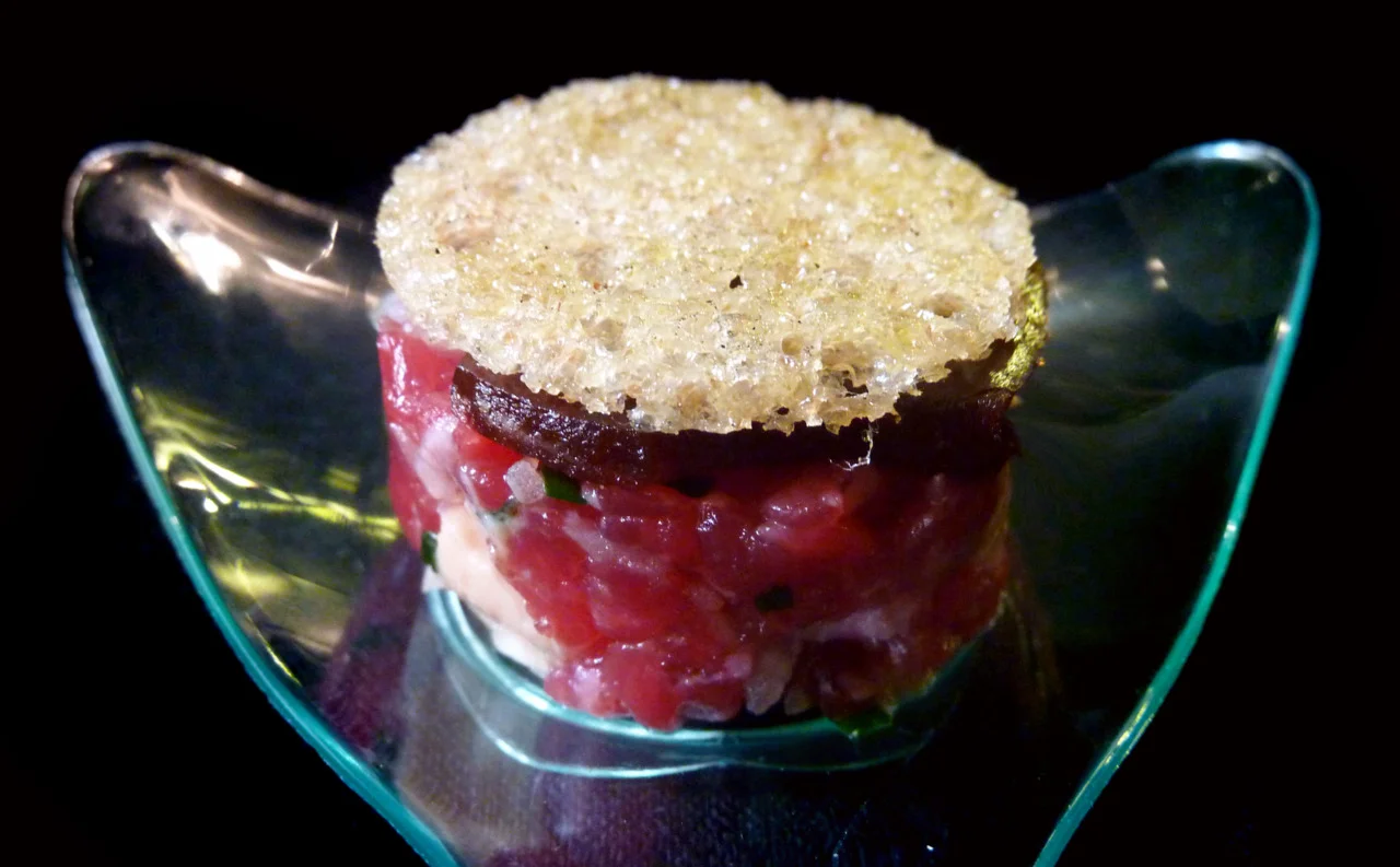 Another one from the boss. He gently folded cubes of foie gras into the tartar and then topped it with a cabernet gelee which is essentially leftover coq au vin juice, reduced, strained, cooled, and cut. Pretty ingenious if you ask me.