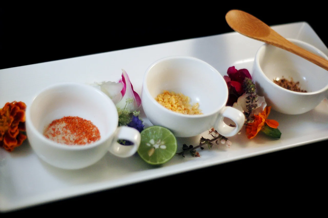 Salts : citron, lime, chili-plum, habanero, lava salt, maldon, filipino pink salt