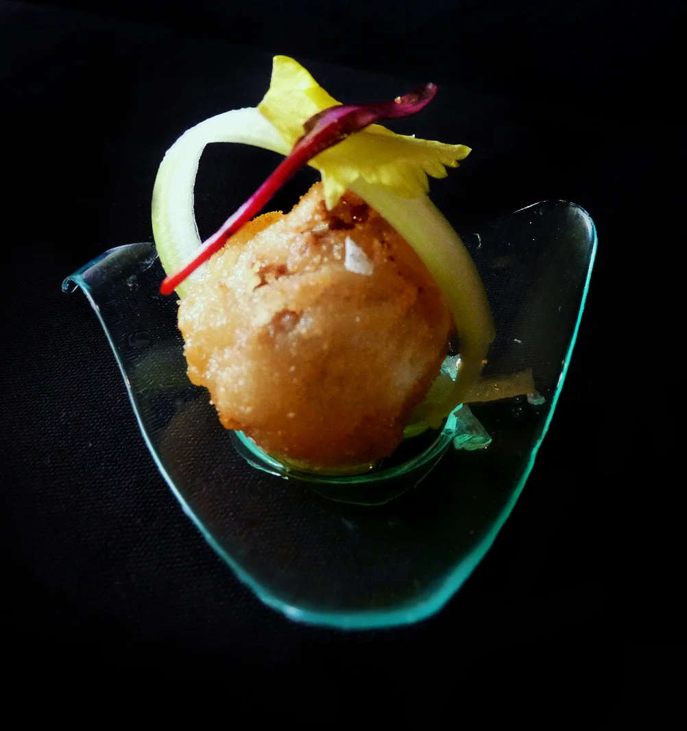 This was an amuse bouche that was coupled with a Mango Soda Pop palate cleanser. The idea was to have the diner eat the foie in one bite and after fully consumed, wash it down with a mango/pop rock push pop.