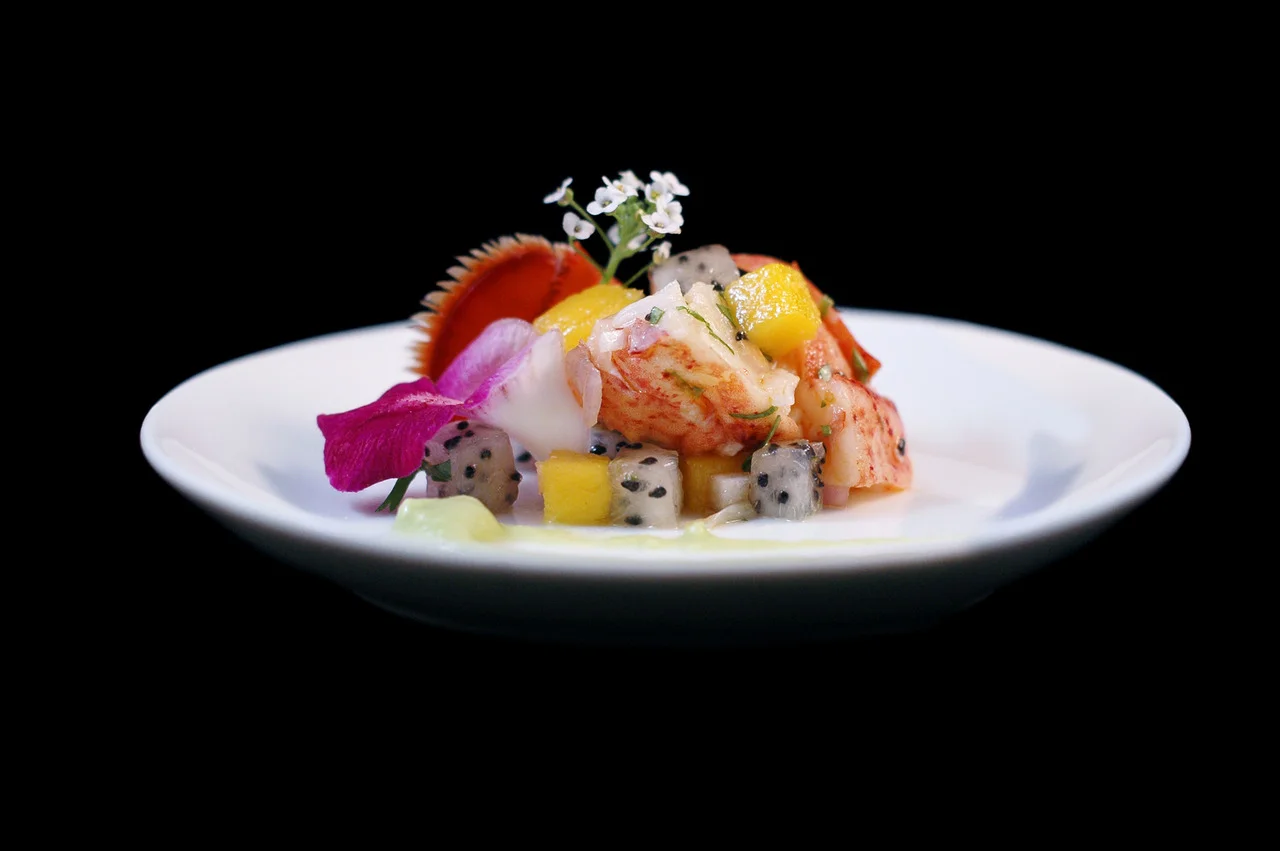 LOBSTER & DRAGON FRUIT SALADavocado puree - mangoes - sea saltChanged the plating on this dish. Comment