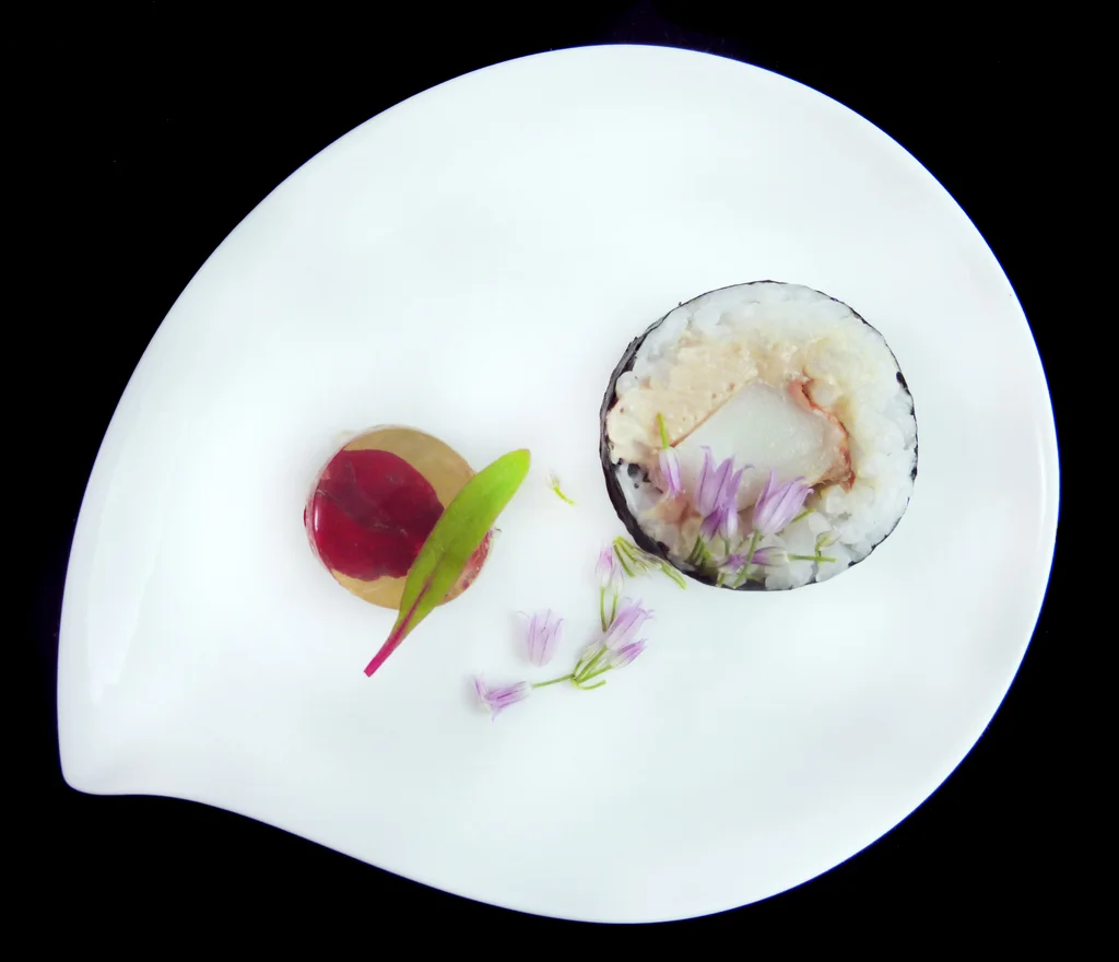 LOBSTER & FOIE ROLLlobster poached in rendered foie gras - sauternes jell-o