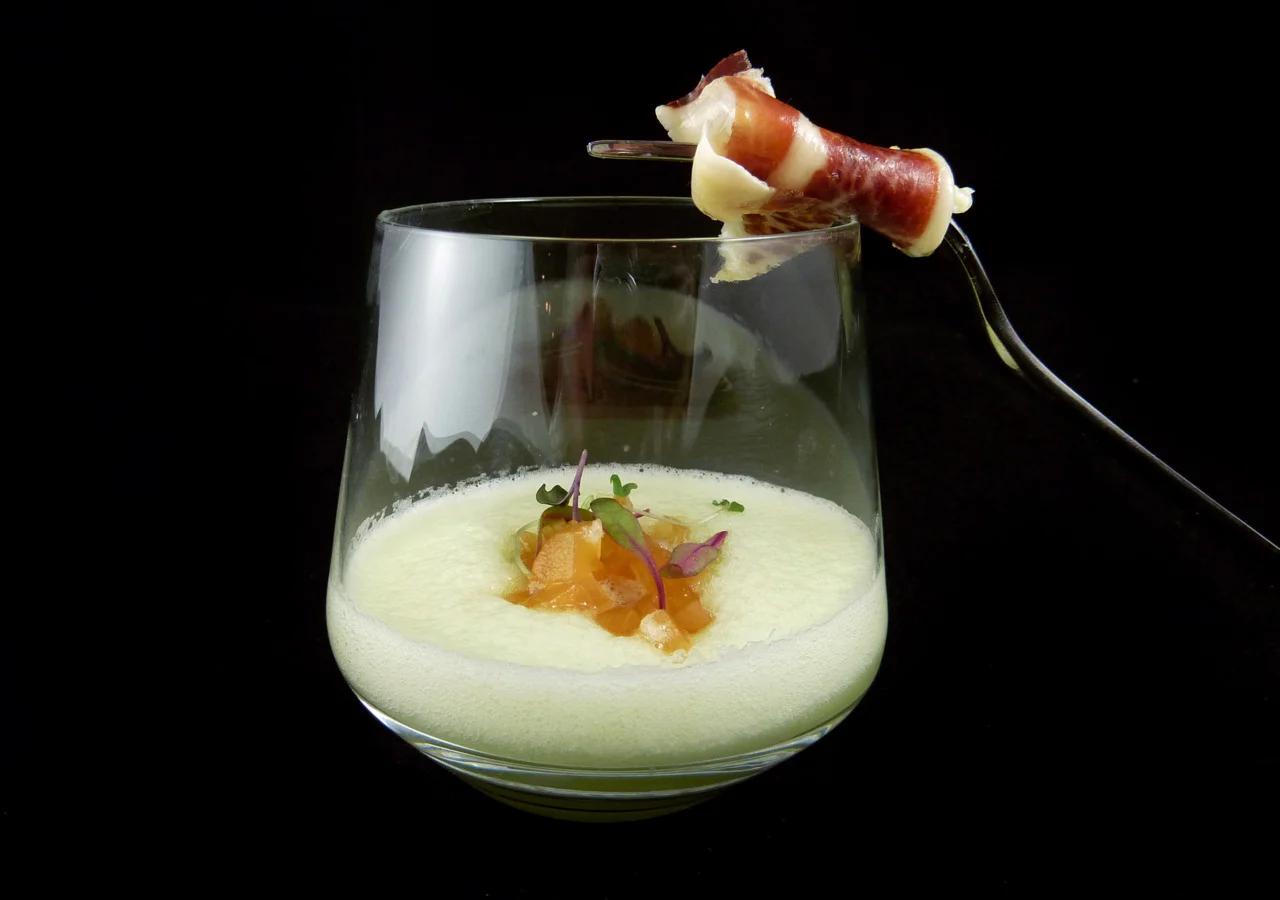 MELON & CHAMPAGNE GAZPACHOcompressed canteloupe - jamon iberico A soup version of the classic proscuitto and melon. Comment