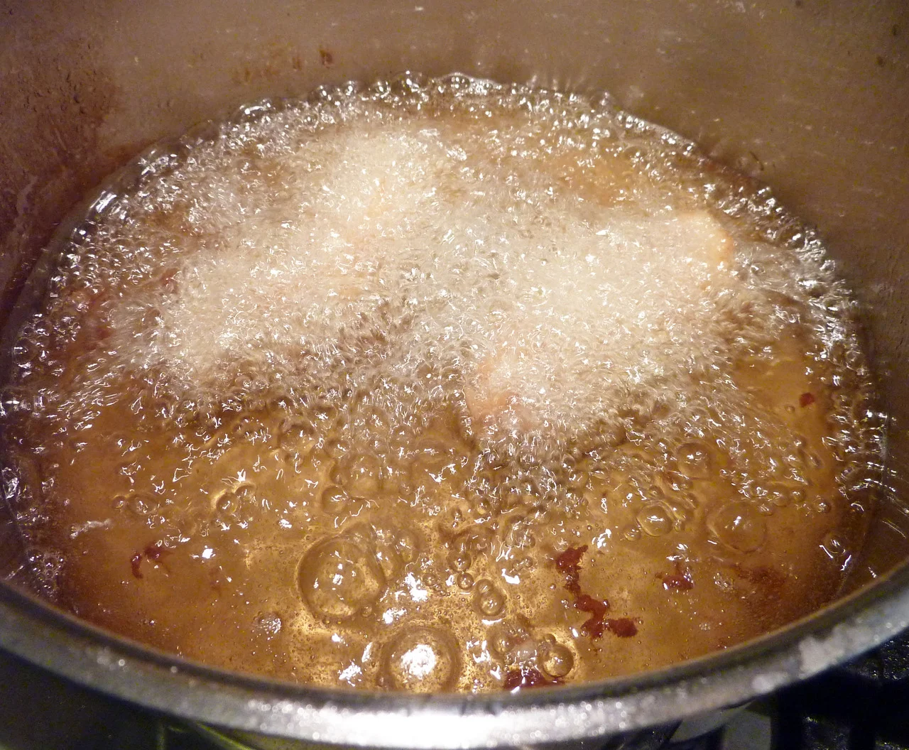 The batter consists of flour, cornstarch, egg, and dark beer. It should be pretty thin, just thick enough to coat the fish. I took a cue from the Chinese and went with a sweet & sour pork batter that I adjusted slightly. I also added a bit of dashi and miso paste for some extra flavor. The batter should be as cold as possible (the difference in temperature as the fish hits the oil causes the batter to puff) . I recommend parking it in the freezer for 20 minutes, but I just threw some ice cubes in there because I got impatient. If you decide to do it this way, the batter must be used immediately or else the ice will melt and dilute the batter.