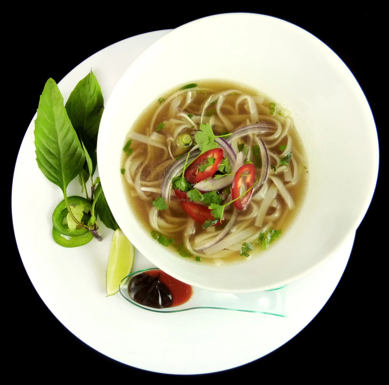 In order to make a good pho you need a collagen-rich stock packed with umami. If you’re making a beef broth, use oxtails instead of beef shanks. If you’re doing chicken, go with chicken feet. Don’t roast the bones and use the traditional aromatics such as burnt onions & ginger, cardamom, cassia (a Vietnamese cinnamon), star anise, coriander, and cloves. To heighten the sense of umami, I also add dried porcinis, shiitakes, fish sauce, rock sugar, and clam juice (to make up for the absence of MSG).