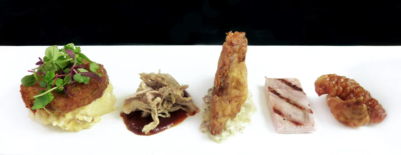 jamon iberico stone ground grits/fried green tomato - pulled pork/espresso bbq - chicken-fried steak/sawmill gravy - house-made chicharones