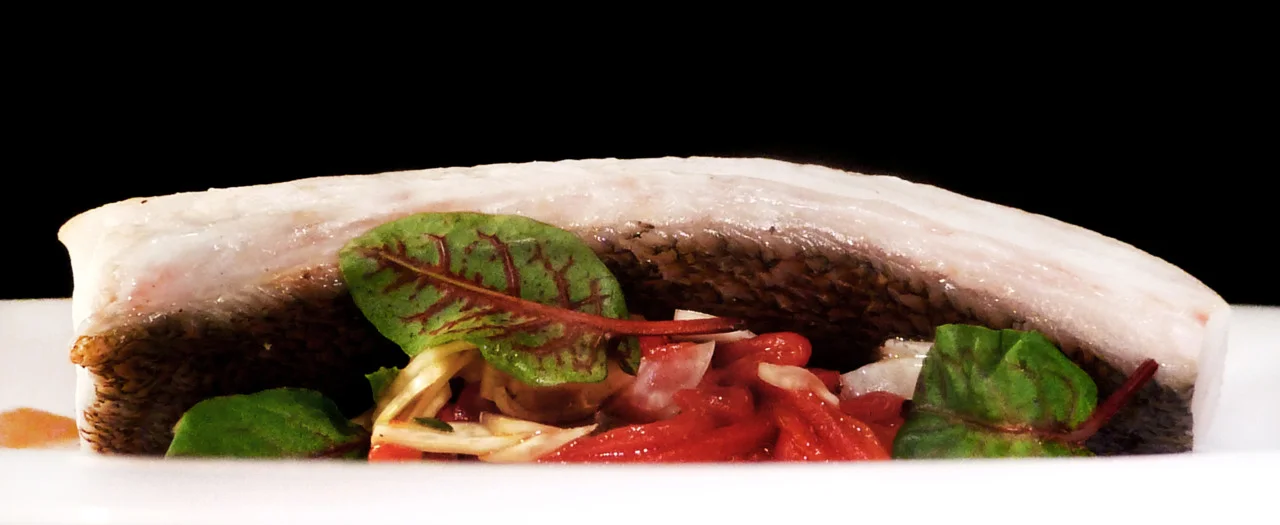 I love this kind of simple, classic food. ‘En papillote’ means ‘in paper’ in French; in this case, the fish was wrapped and cooked in parchment. It’s a classic technique that never fails to deliver a moist piece of fish. Drop in a knob of butter or a drizzle of olive oil before you wrap it up and all the juices from the fish and aromatics will mingle with it to create a light brothy sauce.