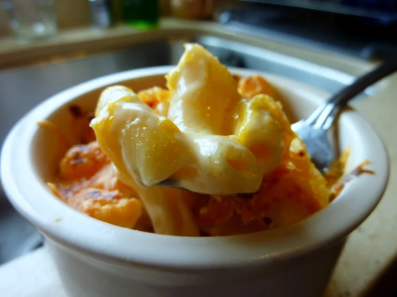 I love mac & cheese all sorts of ways, but sometimes, simple is best. For instance, here we have a cheese sauce made of just cream, butter, and cheese—nothing else. No roux is needed if you add enough cheese and you toss the macaroni a la minute. The topping is sharp cheddar mixed with smoked cheddar and melted in the broiler.