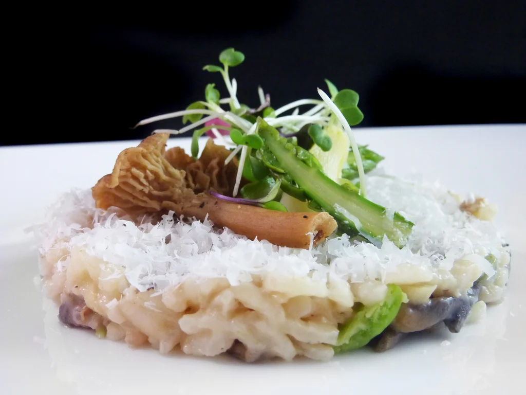 SPRING VEGETABLE RISOTTOyellowfoot mushrooms - squash blossoms - asparagus