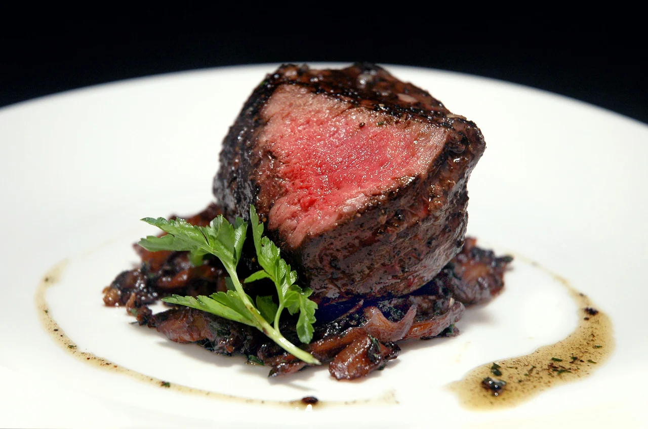 grass-fed loin of ribeye with black lava salt & truffled blue oyster mushrooms