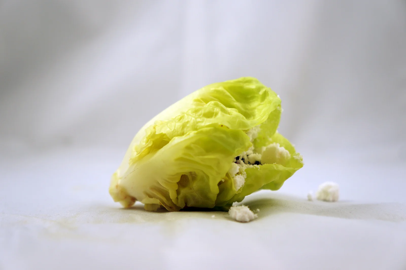 We saved all the hearts from the butter lettuce (which we use for our burger bar) and stuffed it with bacon marinated and cooked a la bulgolgi, a peeled tomato, and bacon powder. This was a one-bite deal.